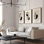 Zestaw został uruchomiony jako spójna kolekcja, idealna do ekspozycji w formie tryptyku, ale także jako trzy niezależne akcenty dekoracyjne. Doskonale sprawdziliśmy się we wnętrzach, minimalnych, japandi, wabi-sabi, modern classic oraz loftowych, wprowadzając do przestrzeni szczelinowych, ekspresję i ponadczasową elegancję.