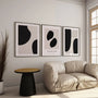 Zestaw Atelier Noir to zbiór trzech plakatów abstrakcyjnych, najważniejszych na kontrastowym wydaniu, włączonego do ciepłego i ciepłego, neutralnego beżu. Kompozycje bazują na organicznych kształtach, odrębnych liniach oraz rytmie formie, tworzącej pozostałą, ale wyrazistą estetykę.