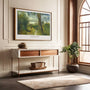 Poziomy format sprawia, że ta dekoracja ścienna w nurcie impresjonizmu doskonale pasuje nad sofę, łóżko lub biurko. Świetnie wygląda we wnętrzach klasycznych, skandynawskich oraz rustykalnych, wnosząc spokój do salonu, sypialni lub gabinetu. W ramie prezentuje się elegancko, a bez ramy zachowuje czysty, nowoczesny charakter.