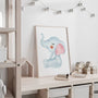 Plakat z uroczym słonikiem w delikatnym stylu akwareli to idealne obrazy do pokoju dziecka i niemowlaka. Pastelowy błękit oraz różowa uszka zapewniająca spokojną, przytulną dekorację ścienną do wygodnego pokoju dziecięcego, boho i skandynawskiej. Ten plakat dla dzieci pięknie wygląda solo lub w zestawie z innymi zwierzętami jako galeria na ścianie. Świetny pomysł na prezent na baby shower, narodziny, chrzest lub pierwsze urodziny — lekkie, minimalistyczne obrazy, które ocieplają wnętrze.