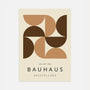 Ten plakat inspirowany stylem Bauhaus prezentuje ciepłą paletę brązów, rdzawych odcieni i bordo. Całość wygląda harmonijnie i elegancko, a modernistyczna równowaga łączy estetykę z funkcjonalnym podejściem do designu.