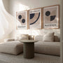 Plakaty Bauhaus – Zestaw 3 sztuki „Forma i Cisza” do minimalnej kolekcji inspirowana ideą redukcji formy i wizualnej harmonii charakterystycznej dla Bauhausu lat 20. XX wieku. Projekty bazują na prostych relacjach płaskich – kołach, półokręgach i ćwiartkach – zestawionych w spokojnych, zrównoważonych kompozycjach.