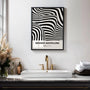 Ten plakat w stylu Bauhaus bada ruch i rytm poprzez płynne czarno-białe linie, które tworzą wyraziste wrażenie przestrzennej głębi. Dynamiczna kompozycja przyciąga wzrok, a jednocześnie zachowuje czystą, nowoczesną strukturę.