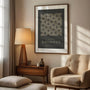 Spokojny, uporządkowany i dyskretnie odważny, wnosi harmonię oraz dokładność — świetny jako minimalistyczna dekoracja ścienna beż i czerń lub plakat do biura w nowoczesnym stylu. SKU: 2517