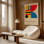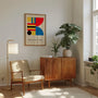 Ten plakat inspirowany stylem Bauhaus dodaje wnętrzu energii dzięki odważnej palecie barw: czerwieni, żółci, błękitowi i czerni. Minimalistyczny styl oraz wyraziste kontrasty tworzą dynamiczny, modernistyczny efekt: uporządkowany, ekspresyjny i nowoczesny.
