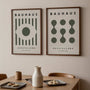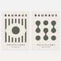 Zestaw 2 Plakatów Bauhaus Zielony do zakończenia połączenia modernistycznej geometrii i kamiennej palety barw. postacie dla Bauhausu motywy – rytmiczne koła, symetria i proste formy – klasyczne kompozycje klasycznego charakteru. Odcienie zieleni, od ciemnej oliwki po zgaszone tony, spokojną, wyważoną atmosferę, standardową do współczesnych urządzeń.