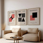 Plakaty Bauhaus – Zestaw 3 sztuki „Rytm i Pauza 1923” do kolekcji abstrakcyjnych grafików inspirowanych modernistycznym myśleniem o szkołach Bauhaus. Projekty działają w formie powtórzenia, świadomym rytmu emisji oraz przerwami, które budują i regularnie.