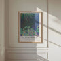Plakat „Nenufary z odbiciami wysokich traw” autorstwa Claude Monet przedstawia „Nymphéas avec reflets de hautes herbes” — dzieło z cenionej serii nenufarów malowanej w Giverny. Obraz ukazuje zmienne odbicia wysokich traw na powierzchni stawu: spokojne, a jednocześnie ekspresyjne i niezwykle nastrojowe.