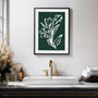 Plakat Emerald Line Florals to minimalistyczny obraz w stylu obrazy Bauhaus , przedstawiający delikatny, szkicowy motyw kwiatowy na głębokim szmaragdowym tle. Połączenie prostych, organicznych linii z wyrazistą kolorystyką tworzywową, elegancką, modernistyczną kompozycją, odzwierciedleniem wnętrz inspirowanych naturą, geometrią i surowym minimalizmem. Ten plakat doskonale odnajdzie się w sklepie, sypialni, jadalni czy posiłku, wprowadzając atmosferę harmonii oraz nowoczesności. To propozycja dla stylu modernistycznego, plakatów Bauhaus , geometrycznych i subtelnych grafików botanicznych.
