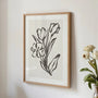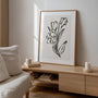 Plakat Kwiatowa Grafika Line Art to minimalistyczny obraz przedstawiający szczegółowy tulipany i subtelny kwiat szkicowany jednolitą linią. Prosta, elegancka forma oraz stonowana efekt, że dekoracja jest kompletna w stylu modernistycznym, skandynawskim, boho czy japandi. Obrazy liniowe wprowadzają do powszechnej harmonii, lekkość i nowoczesny charakter. Ten plakat świetnie sprawdził się w sklepie, sypialni, czy przedpokoju.