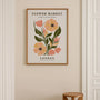 Stylowy plakat „Flower Market London” to nowoczesna, botaniczna ilustracja inspirowana plakatami vintage z targów kwiatowych. Łączy odcienie brzoskwini, zieleni i złamanej bieli, tworząc dekorację pełną świeżości i elegancji. Idealny jako samodzielna dekoracja lub w zestawie z innymi obrazami botanicznymi w stylu modern vintage. Ten plakat doskonale uzupełnia wnętrze w stylu skandynawskim, boho, retro czy modern classic.