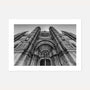 Czarno-biały plakat przedstawiający imponującą fasadę gotyckiej katedry uchwyconą z perspektywy żabiej, która zwraca uwagę majestatu i detalu architektonicznego. Idealne dla architektury architektury, sztuki sakralnej i eleganckich wnętrz. Dziesięć plakatów w stylu noir doda przestrzeni charakteru, głębi i ponadczasowej estetyki. Doskonały do salonu, gabinetu, biura lub przestrzeni w stylu minimalistycznym.