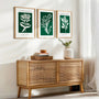 Green Botanical Abstract Prints – White Floral Set of 3