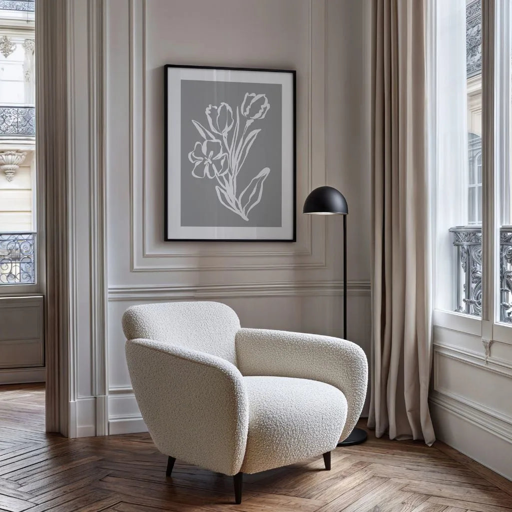 Grey Floral Line Art Poster