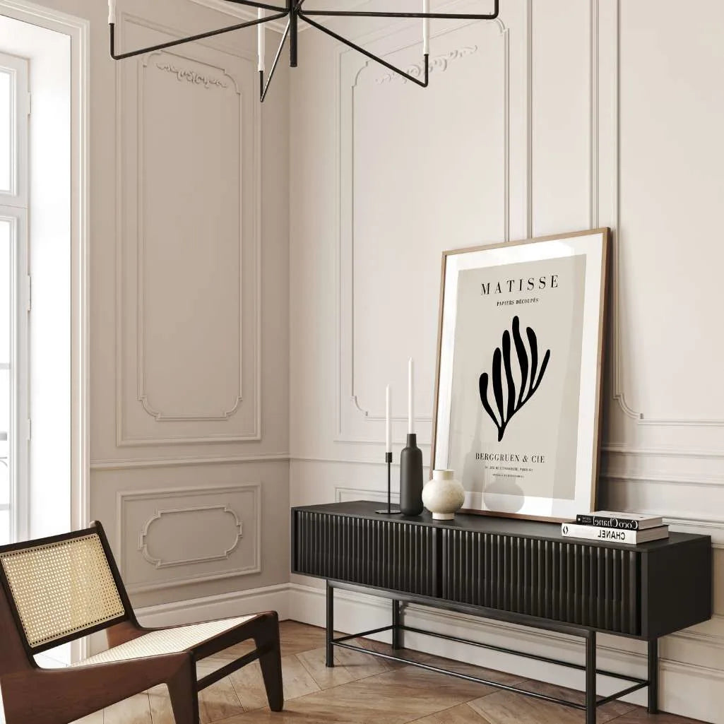 Dodaj nowoczesnej elegancji do swojego wnętrza dzięki plakatowi inspirowanemu twórczością Henri Matisse'a. Czarna organiczna forma przypominająca koral wyróżniająca się na subtelnym beżowym tle, tworząca różnicę i wyrafinowaną kompozycję. Idealny wybór do salonu, sypialni lub biura.