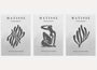 Każdy plakat przedstawia pojedynczą, wyraźną formę o nieregularnym konturze, ukazaną w stonowanej, szarej tonacji na jasnym tle. Ograniczona paleta akcentująca, wyważony charakter oraz ich wyjątkowa elegancja. Brak zbędnych szczegółów pozwala na uwagę na harmonii kształtu i relacji przestrzeni negatywnej z negatywnej.