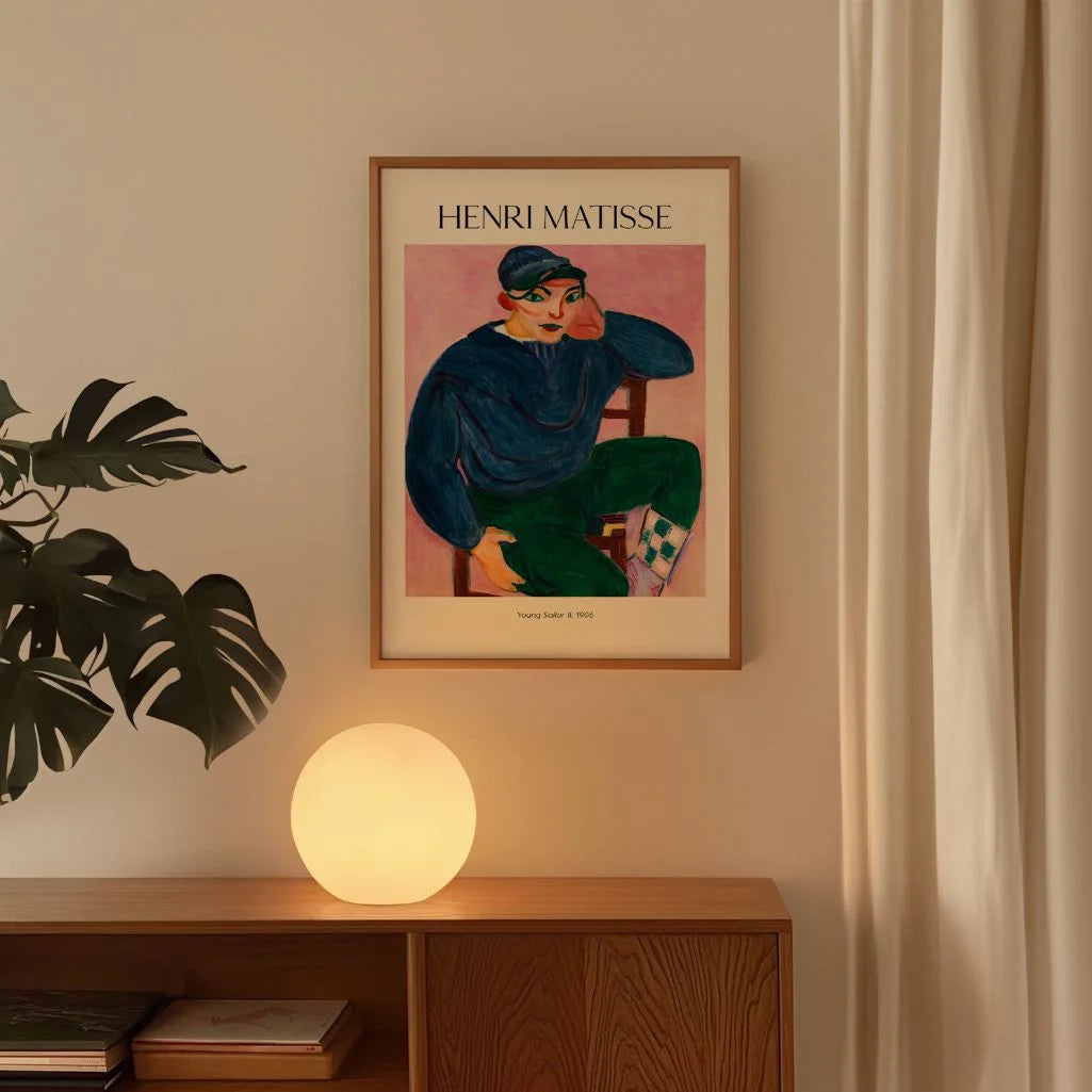 Ten plakat przedstawia obraz Henri Matisse’a Young Sailor II (1906), jeden z najważniejszych portretów wczesnego okresu fowizmu. Intensywne kolory, uproszczone formy i wyraźne kontrasty nadają kompozycji nowoczesny charakter.