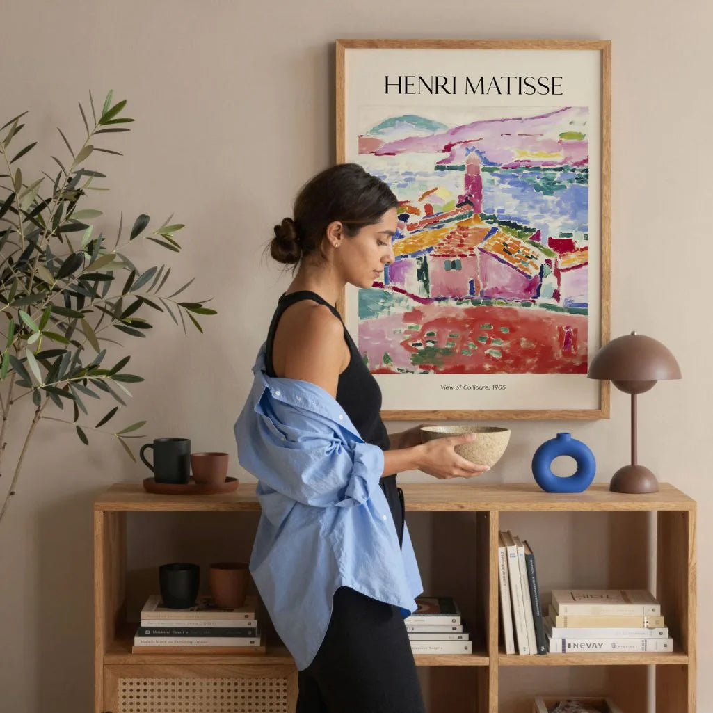 Ten plakat przedstawia „View of Collioure” (1905) Henri Matisse, namalowany podczas przełomowego pobytu artysty w Collioure, który odegrał kluczową rolę w narodzinach fowizmu. Intensywne kolory i ekspresyjne pociągnięcia pędzla ukazują słoneczny krajobraz śródziemnomorski pełen światła i energii.