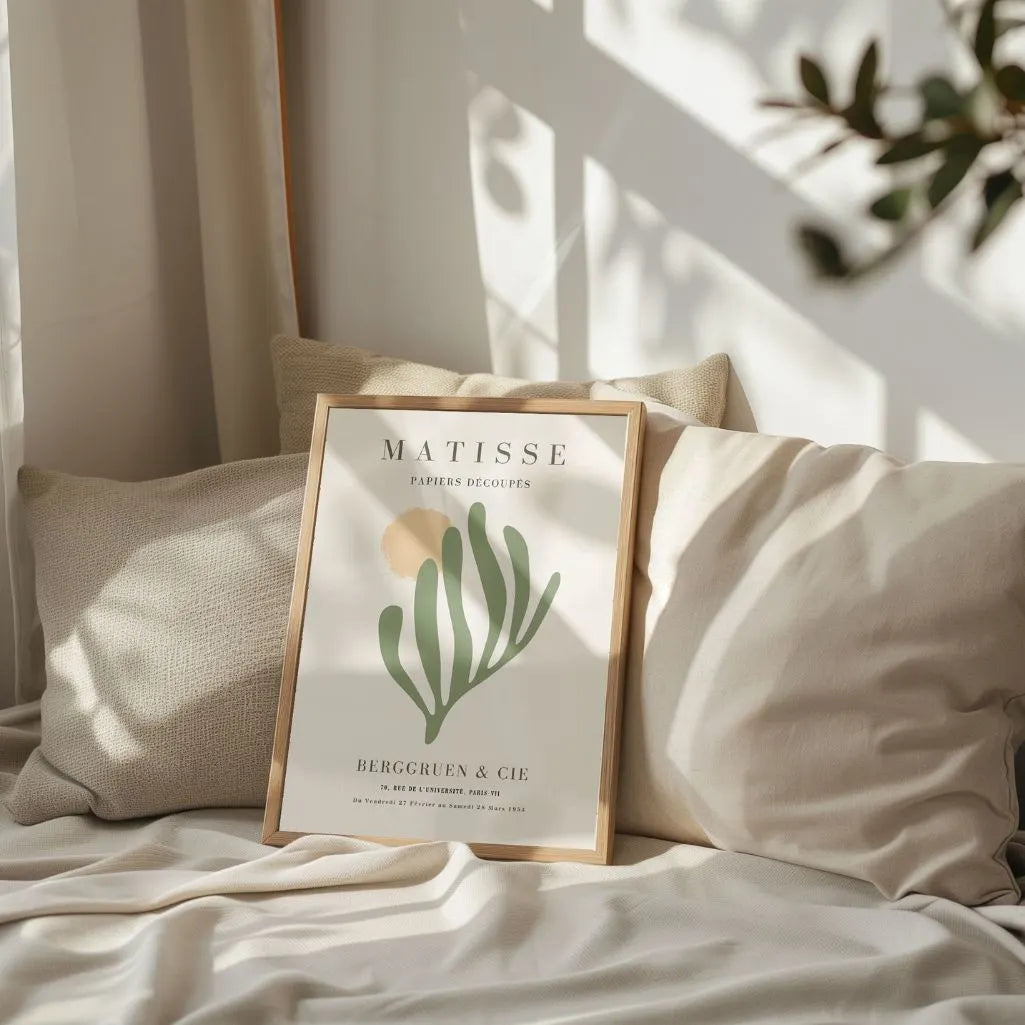 Zainspirowany ikonicznymi wycinankami Henriego Matisse’a, ten elegancki plakat wnosi do wnętrza spokojną, organiczną abstrakcję. Miękkie kształty i kojąca paleta zieleni oraz beżu budują poczucie harmonii, cichej równowagi i naturalnego piękna — idealne do codziennych przestrzeni, w których liczy się prostota.