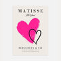 Ten plakat stanowi nowoczesną interpretację klasycznego motywu, inspirowaną stylem artystycznym Henriego Matisse’a. Dynamiczne, różowe pociągnięcie pędzla tworzy tło dla minimalistycznego czarnego serca – symbolu emocji, energii i pasji.