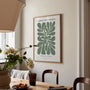 Minimalistyczny plakat botaniczny z dotyku, grafika motywem roślinnym w szałwiowej zieleni na jasnym tle. Organiczne kształty zabezpieczające, jednocześnie retro-inspirowana kompozycja, która wygląda jak artystyczny druk z kolekcji muzealnej. Prosty układ i odpowiednie kolory, że plakat pasuje do wnętrz japandi, skandynawskich, boho oraz — dodaje charakter, ale nie przytłacza.