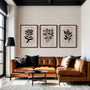 Jardin Botanique Minimalist Prints – Black Botanical Line Art Set of 3