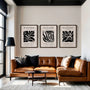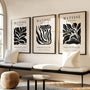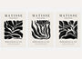 Plakaty Henri Matisse – Zestaw 3 sztuki „Black Flower & Leaves” do minimalnej kolekcji inspirowanych motywami roślinnymi charakterystycznymi dla późnej twórczości Henriego Matisse'a oraz techniką papiers découpés .