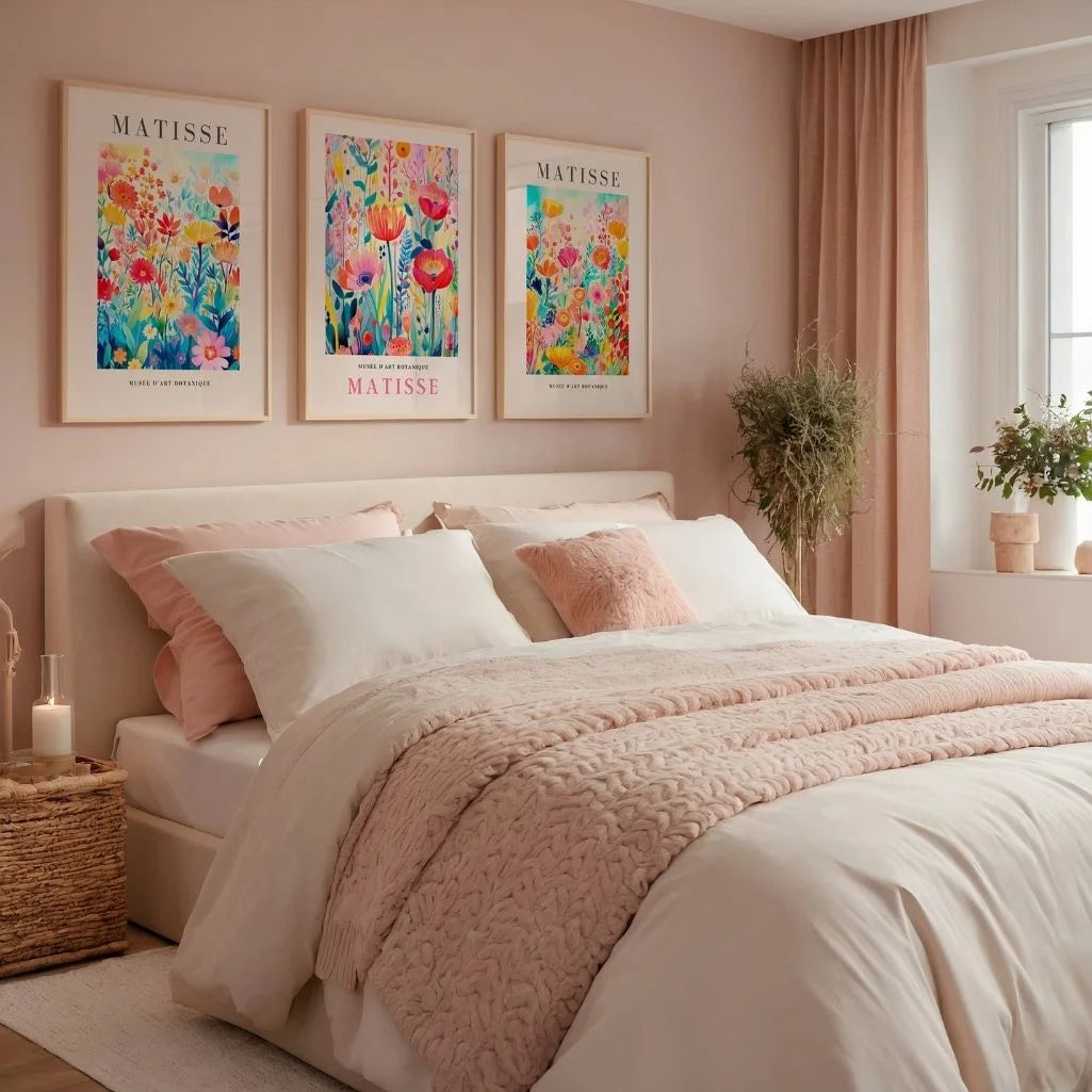 Plakaty Matisse – Zestaw 3 Sztuki „Botaniczny Ogród Koloru” do dekoracyjnej kolekcji inspirowana botaniką oraz wydanym zwolnieniem do koloru, charakterystycznym dla modernistycznej estetyki Matisse'a.