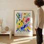 Ten plakat inspirowany Matisse’em przedstawia promienną kompozycję kwiatową z delikatnym, akwarelowym charakterem. Żółty jako główny kolor przywołuje wrażenie słońca i naturalnego ruchu, dodając wnętrzu energii i lekkości.