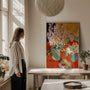 Plakat Henri Matisse – The Plum Blossoms , 1948 (Pełna okładka) przedstawia podstawowe, pastelowe kwiaty śliwe zestawione z występującymi kolorami tła i uproszczoną sylwetką postaci. występna dla późnego twórczości Matisse'a harmonijna paleta barw oraz płynne kształty spokojną, dekoracyjna kompozycja do eleganckich wnętrz. To wyjątkowy wybór dla sztuki modernistycznej, botaniki oraz specyfikacji o charakterystycznym, artystycznym charakterze.