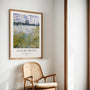 Ten plakat przedstawia „Île aux Fleurs” koło Vétheuil autorstwa Claude’a Moneta (1880). Kwitnąca roślinność na brzegach Sekwany spotyka się z odbiciami nieba na wodzie, a delikatne pociągnięcia pędzla sugerują łagodny wiatr i spokojny rytm letniego dnia.