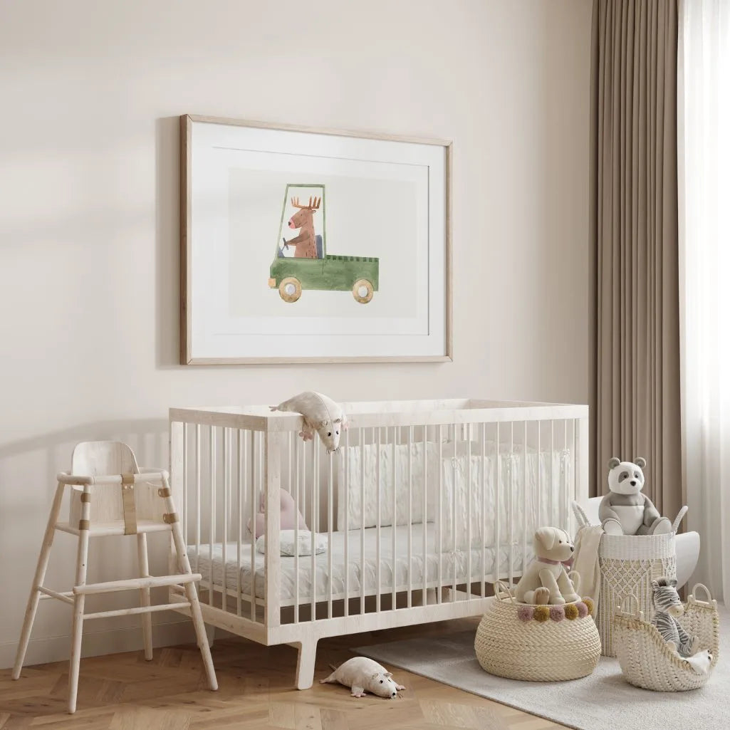 Plakat może być zestawem z innymi zwierzętami i pojazdami, tworząc spójną galerię na ścianie. Jeśli wybierzesz sympatyczne obrazy i plakaty dla dzieci, ta ilustracja będzie idealna na prezent i wyposażenie.