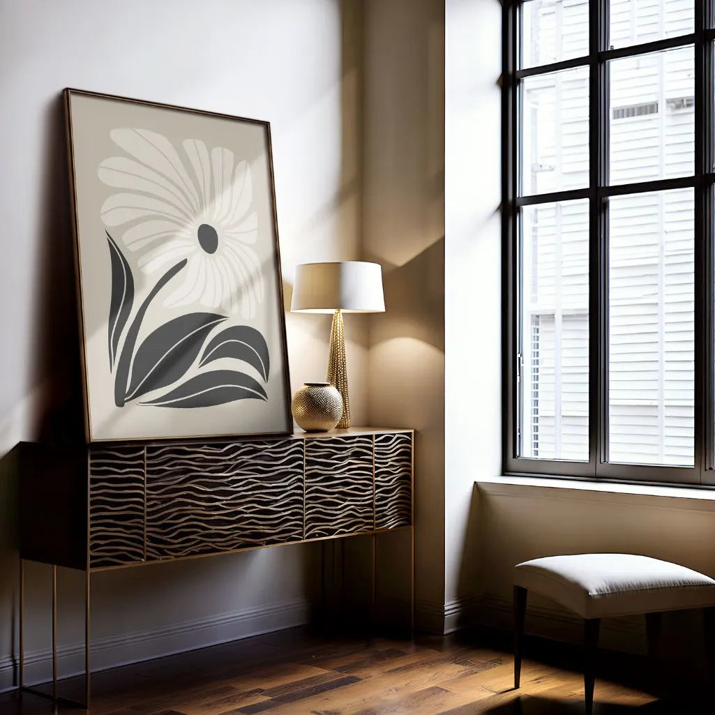 Plakat Kwiatowy Minimalizm Noir to nowoczesna dekoracja ścienna w stylu botanicznym, utrzymana w kompletnej palecie beżu, bieli i czerni. Abstrakcyjny kwiat o charakterystycznych liniach, poświęconych charakterystycznym elementom i artystycznemu charakterowi. Idealny do salonu, sypialni, biura oraz przestrzeni urządzonych w stylu modern, minimal, japandi czy scandi. Obrazy o takim wzornictwie doskonale komponują się z określonymi materiałami i stonowaną kolorystyką.