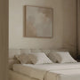 Ten obraz na płótnie w ramie doskonale pasuje do wnętrz japandi, boho i skandynawskich, wprowadzając subtelny, wyważony akcent.