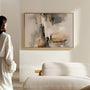 Obraz na płótnie w ramie doskonale komponuje się z wnętrzami japandi, scandi i nowoczesnymi naturalnymi, podkreślając harmonię oraz spokojny charakter przestrzeni.