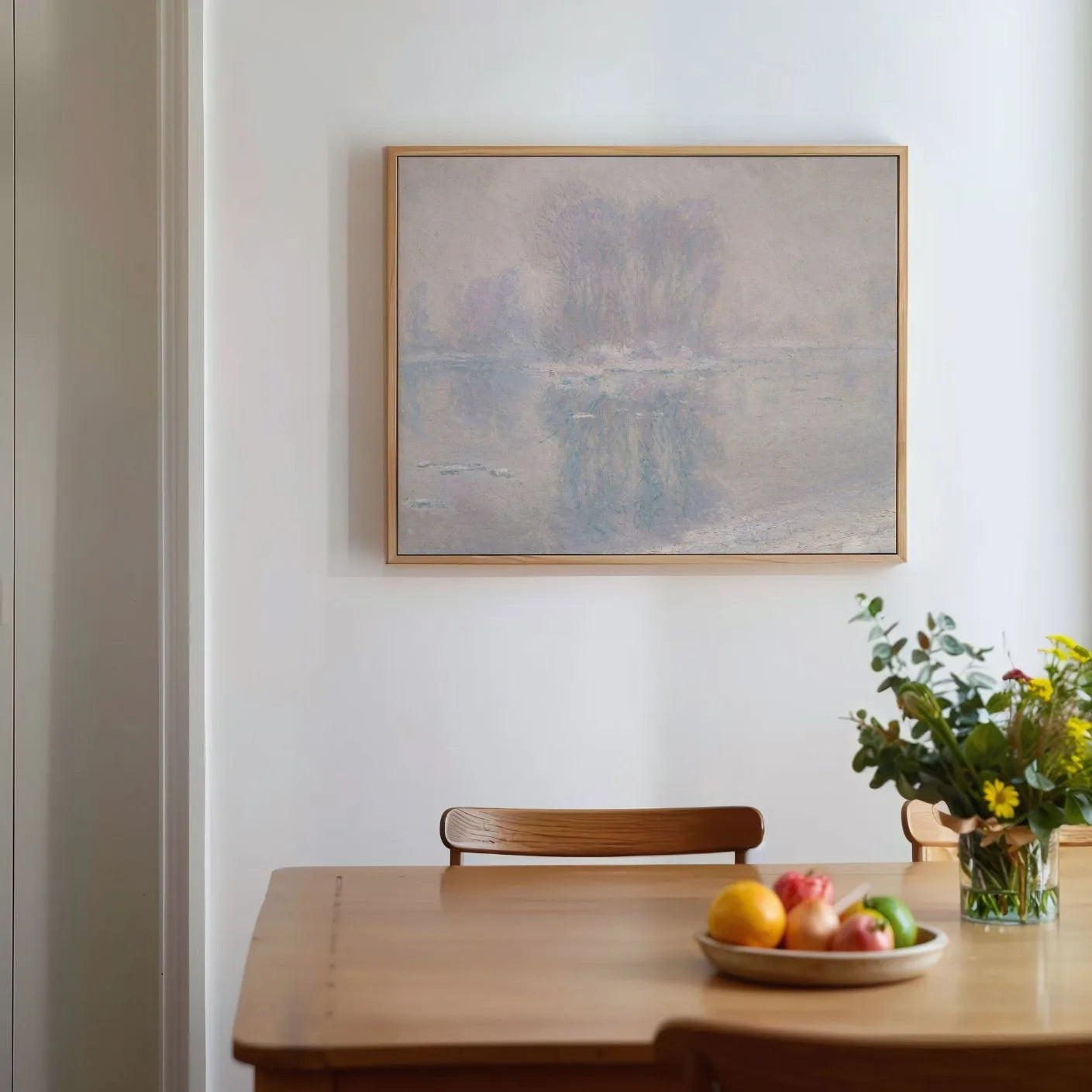 Dzieło oddaje ulotność zimowego poranka i subtelne refleksy światła na lodzie. Ten obraz na płótnie w ramie wnosi do wnętrza ciszę, równowagę i ponadczasową elegancję impresjonizmu.