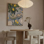 Letni stół łączy miękkie pociągnięcia pędzla z wyrazistymi kontrastami kolorów, tworząc radosną, letnią atmosferę.