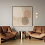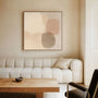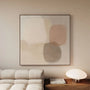 „Neutralna równowaga” łączy miękkie geometryczne formy z beżami, szarościami i ciepłymi brązami, tworząc harmonijną i spokojną kompozycję.