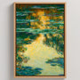 To część legendarnej serii lilii wodnych, odzwierciedlająca fascynację artysty naturą i ulotnością chwili. Ten obraz na płótnie w ramie wnosi do wnętrza ponadczasowy spokój i elegancję.