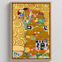 Obraz na płótnie w ramie przedstawia „Fulfillment” (1905) Gustava Klimta, ikoniczne dzieło z monumentalnego cyklu Drzewa Życia i klasyczny przykład secesji wiedeńskiej.