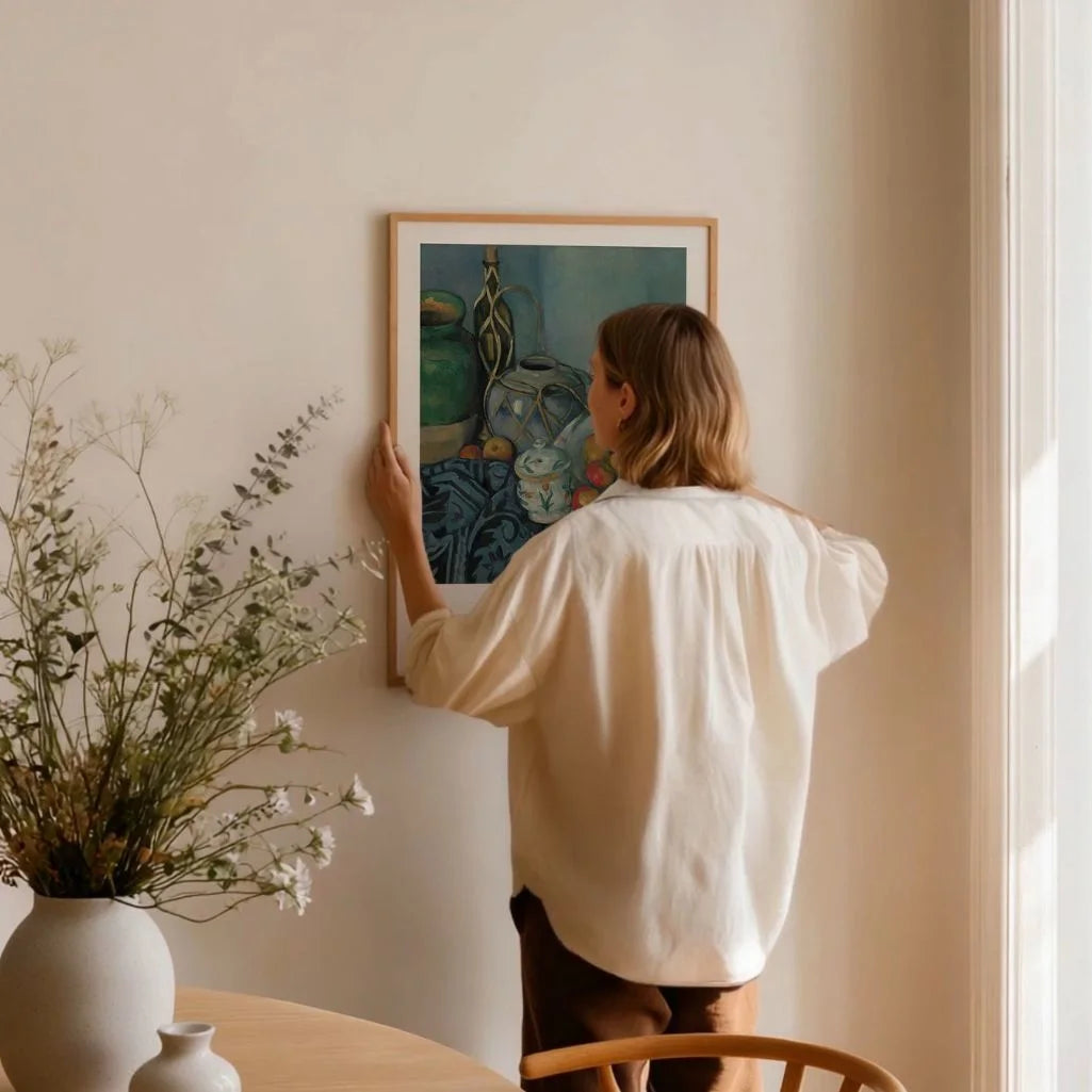 Wydrukowana technika fine art print na papierze o matowym wykończeniu, plakat wierny oddaje fakturę i niuanse przetwarzania obrazu. Kolekcja Paul Cézanne ARTINSPIRIO to hołd dla estetyki francuskiego postimpresjonizmu — połączenie zabezpieczające malarstwa z nowoczesnym designem wnętrz.