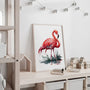 Akwarelowy plakat z różowym flamingiem do stylowej dekoracji ściennej, która dodaje elementy lekkości i tropikalnego charakteru. Ilustracja w postaciach różu pięknie prezentuje się jako obrazy do salonu, sypialni lub pokoju dziecięcego. Minimalistyczne tło podkreśla detal pióra i elegancką funkcję ataku ptaka, dzięki czemu plakat nadaje się do wnętrz, boho, glamour i skandynawskich. Świetnie wygląda solo lub w zestawie z innymi plakatami w stylu wodnym.
