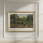 Plakat Camille Pissarro „The Artist's Garden at Eragny” (1898) przedstawia urokliwy ogród artysty w Eragny — miejsce, które stało się jego azylem i niekończącym się wydarzeniem. Pissarro, mistrz impresjonizmu, z nutą delikatności oddaje tu rytm natury, promienie ciepła słońca i codzienny spokój życia na wsi. Każde pociągnięcie pędzla emanuje harmonią między człowiekiem a przyrodą.