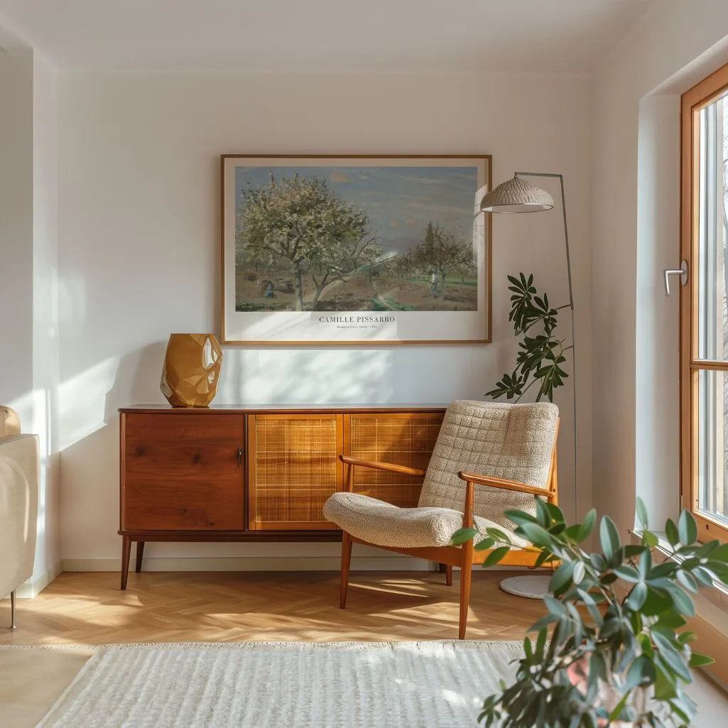 Ten plakat poziomy (horyzontalny) wprowadził do wnętrza harmonię, delikatność i naturalne piękno impresjonizmu. Idealne do jasnych, szerokość przestrzeni — salon, jadalnia lub sypialnia. Doskonale komponuje się z aranżacjami w stylu skandynawskim, boho lub klasycznym.