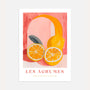 Ten plakat cytrusy przedstawia soczyste owoce na intensywnym różowym tle inspirowanym estetyką południowej Europy. Bogate kontrasty kolorystyczne i malarski styl nadają ilustracji nowoczesny charakter.