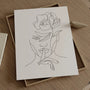 „Kwiatowy sekret” łączy subtelny kobiecy portret z kwiatem unoszącym się nad twarzą niczym cichy symbol. Pojedyncza, płynna linia Line Art buduje harmonijną i przejrzystą formę.
