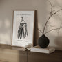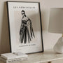 „Parisian Lady” przedstawia kobietę w zdobionej sukni i okularach przeciwsłonecznych, symbol ponadczasowej elegancji. Rysunek Line Art łączy energię szkicu modowego z artystycznym minimalizmem.