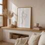 Minimalistyczna kompozycja przywołuje atmosferę łagodnego początku dnia. Ten plakat Line Art doskonale pasuje do wnętrz skandynawskich, japandi, nowoczesnych i boho, dodając harmonii oraz lekkości.