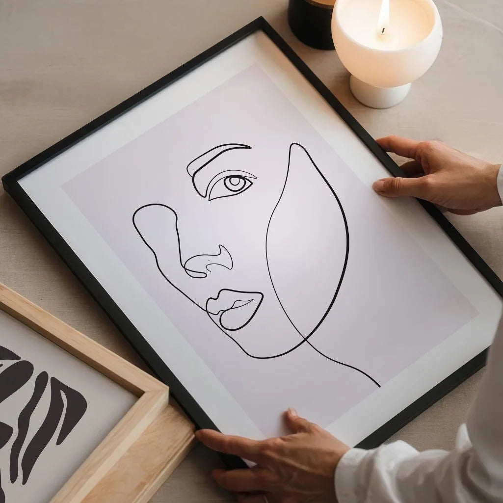 Kompozycja jest intymna i wyważona. Ten plakat Line Art doskonale pasuje do wnętrz nowoczesnych, skandynawskich, minimalistycznych i japandi, wprowadzając spokojny, artystyczny akcent.