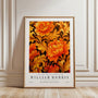 Plakat przedstawia intensywny motyw florystyczny w złoto-pomarańczowych tonach, z bujnymi liśćmi i ornamentalnym detalem na ciemnym tle.